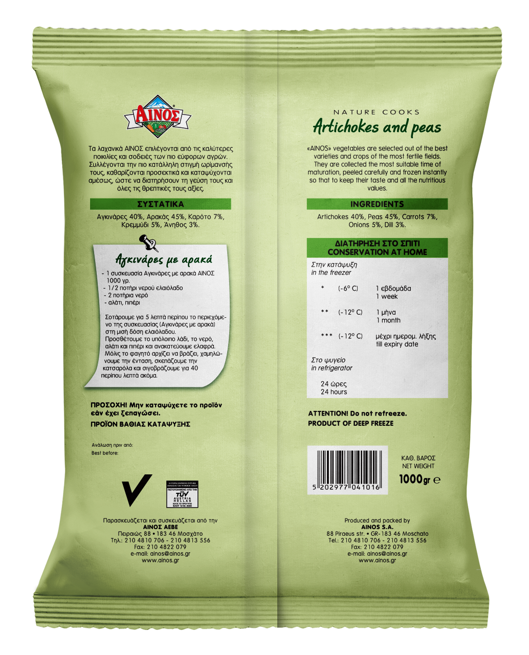 Enjoy the natural sweetness of peas combined with tender artichokes, carrots, onions, and dill — perfect for traditional Mediterranean dishes or healthy, flavorful side meals.