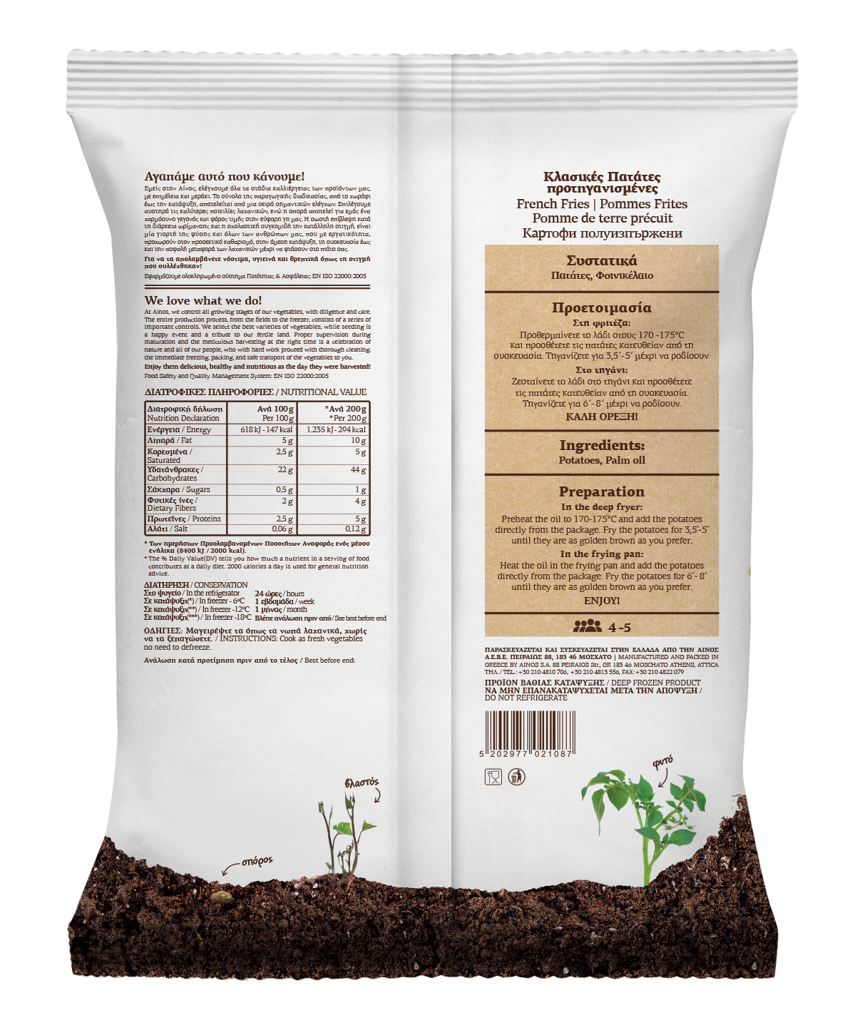 At Ainos, we take pride in producing high-quality frozen vegetables and potato products with passion and expertise. Our products are processed under strict quality and safety standards to preserve their natural taste and nutritional value.